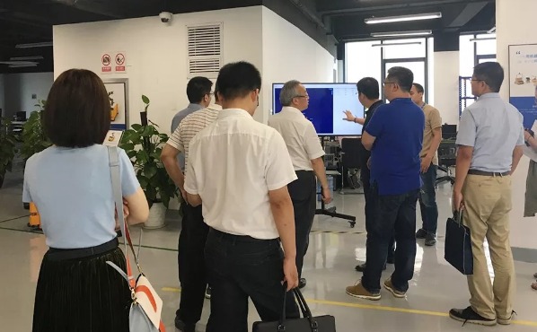 調(diào)研團(tuán)一行正在觀看南江機(jī)器人NjRobot IDS調(diào)度界面