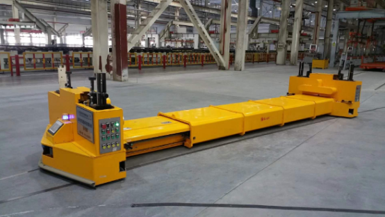 除了上述AGV產(chǎn)品外,專門針對(duì)汽車汽配行業(yè)研發(fā)的AGV也不斷涌入市場(chǎng),定制化特征日益彰顯。東風(fēng)專用設(shè)備科技有限公司設(shè)計(jì)出一種既能運(yùn)輸大型車架中的長(zhǎng)度較長(zhǎng)的車架梁,又能保證伸長(zhǎng)后支撐承載穩(wěn)定的可伸縮式長(zhǎng)行程自動(dòng)導(dǎo)引運(yùn)輸車AGV,滿足重型商用車在線多位多機(jī)種車架裝配及環(huán)形輸送的可伸縮式長(zhǎng)行程AGV,與專用裝配夾具結(jié)合應(yīng)用,由上位信息控制系統(tǒng)提供機(jī)型信息,AGV車體可自動(dòng)伸縮至相應(yīng)夾具支撐間距。