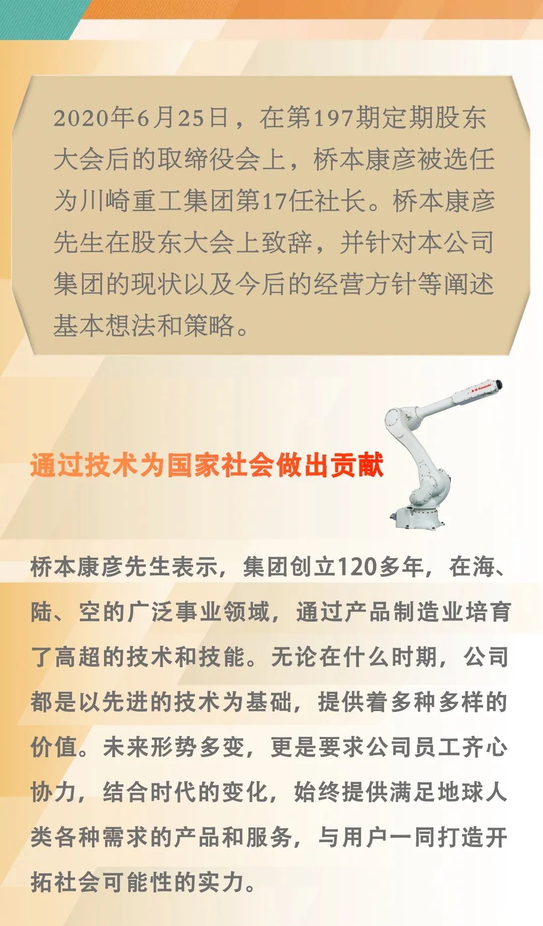 川崎重工新任社長:重視“市場導(dǎo)向”構(gòu)思和“速度感”, “面向未來社會(huì),值得信賴”