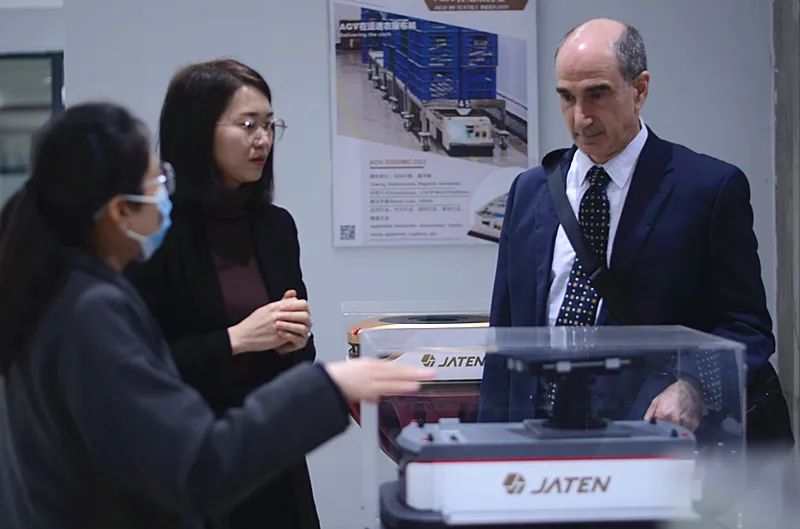 陳友董事長對Barnett先生的問題一一進行了介紹和回答。他說,嘉騰機器人作為一家始終堅持走自主研發(fā)道路的企業(yè),對研發(fā)人才極為重視,不分中外、不拘一格、多方位地引進人才資源,并注重與國外技術(shù)專家的合作與交流;由于今年疫情的影響,嘉騰機器人的海外訂單有一定的影響,但由于中國政府對疫情的控制十分得力、有效,為企業(yè)生產(chǎn)的快速恢復提供了有力保障,所以目前占比相對不大的海外訂單雖然有所影響,但國內(nèi)市場卻得到了持續(xù)穩(wěn)定的增長,尤其七月份以來,形勢已是越來越好。雙方的交流坦誠、融洽,氣氛熱烈而輕松,Steven Barnett一行還頗有興趣地參觀了嘉騰機器人的產(chǎn)線和歷史展廳。陳友董事長最后表示,IMF為全球金融和貿(mào)易做出了杰出貢獻,嘉騰機器人希望與IMF展開積極合作,與世界各國進行親密合作,融入你中有我、我中有你的全球多邊貿(mào)易合作格局中,在工業(yè)4.0的舞臺上奉獻自己應(yīng)有的一份力量。