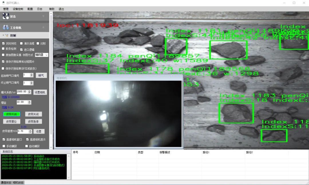 中信重工開誠智能聚焦國家政策,研制的選矸機器人能夠替代人工撿矸,將待選原煤通過原煤供給系統(tǒng)平鋪到皮帶運輸機上,采用視頻分析和大數(shù)據(jù)智能識別技術(shù),對煤與矸石進行數(shù)字化識別,再通過高壓氣源分揀執(zhí)行機構(gòu)可精準高效針對50-300mm粒級煤與矸石進行篩選,選矸準確率大于90%。