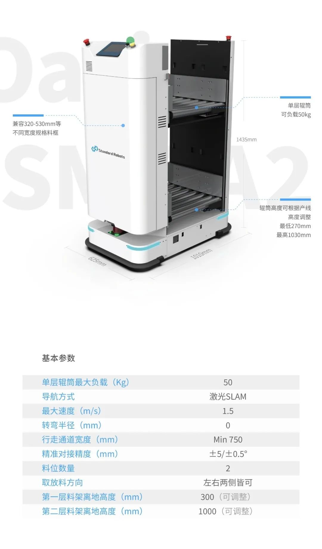 AMR復(fù)雜環(huán)境下的定位精度可達(dá)到毫米級別,精確定位保證運(yùn)輸、對接更穩(wěn)定可靠;配有多級安全防護(hù)措施,確保智慧工廠內(nèi)人機(jī)安全;閑時自動充電,實(shí)現(xiàn)7*24小時不間斷作業(yè)。