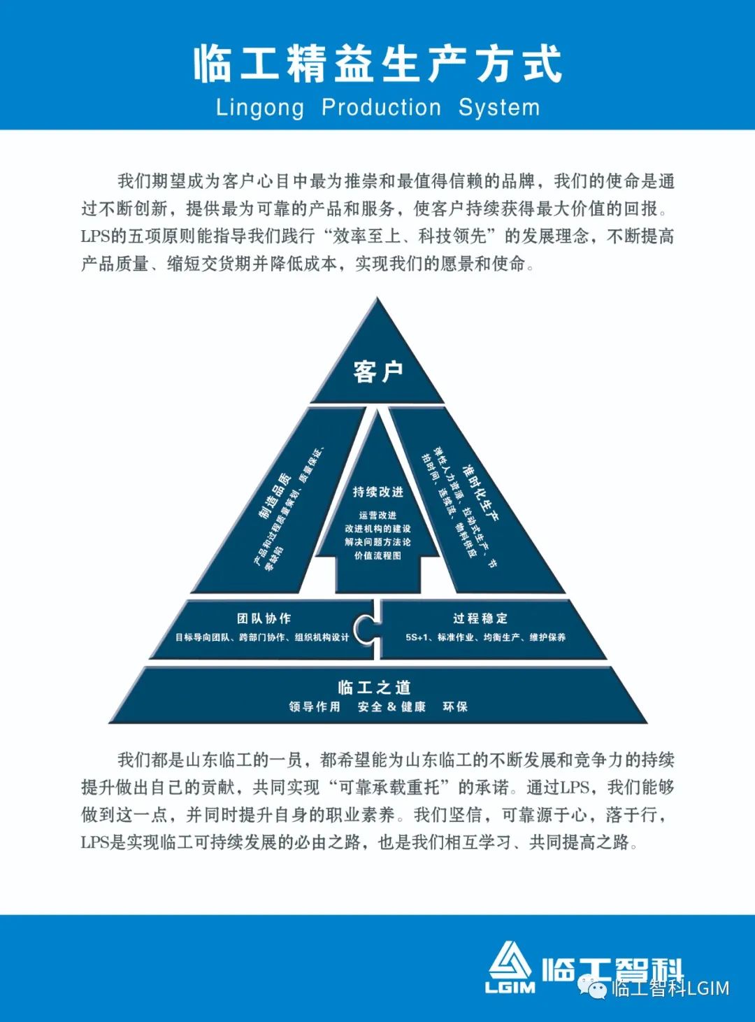 臨工集團(tuán)自2007年推進(jìn)精益生產(chǎn)至今,結(jié)合豐田、沃爾沃等精益管理方式,形成了獨(dú)具特色的臨工精益管理模式,培養(yǎng)儲(chǔ)備了實(shí)踐經(jīng)驗(yàn)豐富的高技能人才團(tuán)隊(duì)、講師團(tuán)隊(duì)和高層次國際專家顧問團(tuán)隊(duì)。作為臨工集團(tuán)的全資子公司,臨工智科凝聚了臨工集團(tuán)的精益智慧資源,汲取了國際化管理經(jīng)驗(yàn),形成了經(jīng)典的管理案例集,向著為更多企業(yè)培養(yǎng)精益人才,幫助更多企業(yè)構(gòu)建精益管理體系的目標(biāo)不斷邁進(jìn)。