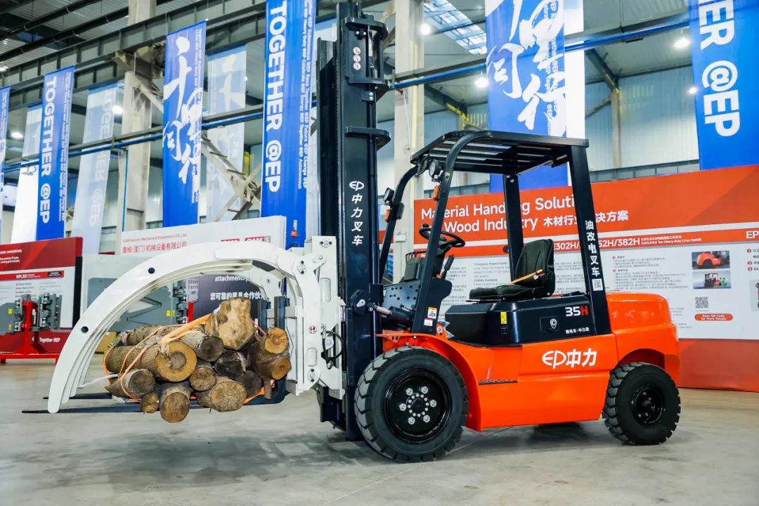 木業(yè)專區(qū),中力行業(yè)定制的抱夾叉車,靈活抓取原木,快速搬運(yùn);針對(duì)木業(yè)板材區(qū),車子還特殊優(yōu)化了起升和行走,做到平穩(wěn)起步和精細(xì)操作;