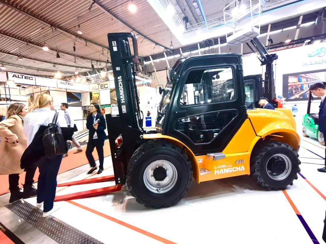 在本次展覽會上,我們特別推出了3.5噸高壓鋰電四驅(qū)越野叉車,這是業(yè)界首款此類產(chǎn)品。該車融合了業(yè)界先進的高壓鋰電永磁同步驅(qū)動技術(shù)、車規(guī)級317V高電壓平臺和全車水冷技術(shù),使得整車在能耗低、性能優(yōu)越、快速充電等方面具備顯著優(yōu)勢,完全能夠滿足客戶在重負荷工況下的使用需求,并在各種嚴苛的作業(yè)環(huán)境下達到甚至超越傳統(tǒng)內(nèi)燃越野叉車的表現(xiàn)。