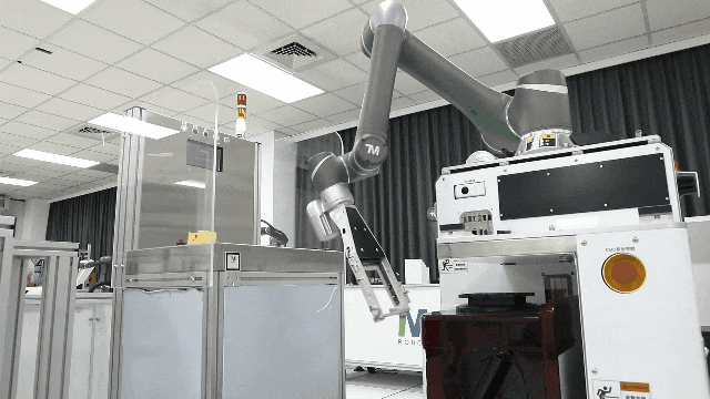 達明機器人 AI Cobot在AGV/AMR到達各工作站時,可使用內(nèi)建視覺與TM Landmark功能,輕松完成精確的空間3D定位,非常適用于移動式碼垛及Machine Tending等應(yīng)用。