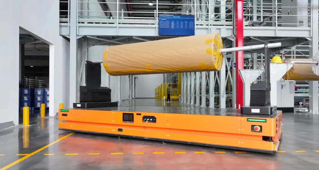 ●針對(duì)布卷料軸尺寸大(長(zhǎng)3.2米、重達(dá)1噸)的特點(diǎn),宇鋒智能定制開發(fā)非標(biāo)潛伏式全向式AGV,實(shí)現(xiàn)布卷的自動(dòng)化搬運(yùn)。該方案具備更強(qiáng)的靈活性與可移動(dòng)性,有效降低廠房布局成本,提升空間利用率,確保物料搬運(yùn)過程安全、無(wú)變形。