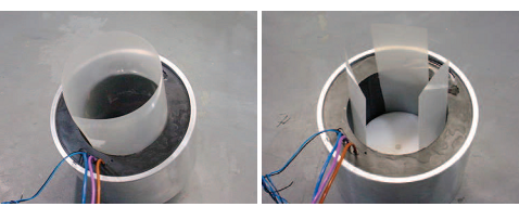 組裝前,在定子內(nèi)側(cè)放入聚酯薄膜(單層或多片),用來保護(hù)部件,由于KBM轉(zhuǎn)子采用是高性能的稀土磁體,可能會(huì)存在較大的磁力,將轉(zhuǎn)子放入定子時(shí)要非常小心,避免產(chǎn)品和人身安全,必要時(shí)使用工裝壓裝,組裝環(huán)境保證清潔防止鐵屑等污染產(chǎn)品,避開電子等金屬物件,防止磁化。