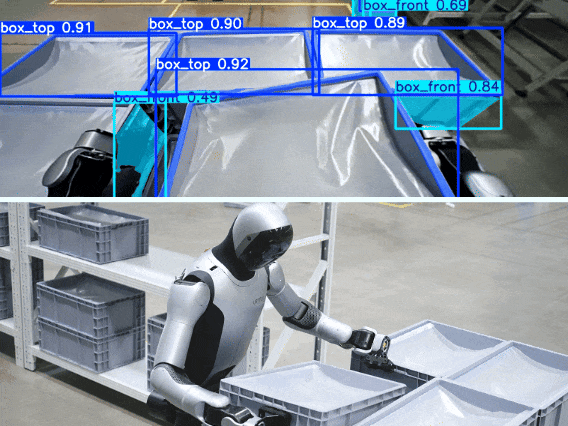 第一,自研視覺編碼器基座,構(gòu)建精準(zhǔn)環(huán)境感知。優(yōu)必選以ViT作為視覺編碼器原型,結(jié)合Co-DETR檢測(cè)頭,依托Object 365等開源數(shù)據(jù)在通用視覺任務(wù)上進(jìn)行預(yù)訓(xùn)練,并通過多階段模態(tài)對(duì)齊機(jī)制實(shí)現(xiàn)了視覺-語言模態(tài)的高效融合。最終,在優(yōu)必選機(jī)器人數(shù)據(jù)集上進(jìn)行微調(diào),顯著提升機(jī)器人在工業(yè)場(chǎng)景中對(duì)物體、障礙和操作上下文的識(shí)別能力,為復(fù)雜環(huán)境下穩(wěn)定可靠的多模態(tài)環(huán)境感知奠定了堅(jiān)實(shí)基礎(chǔ)。