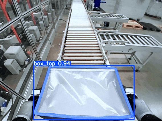 Prompt:"Move the material box onto the pile of boxes next to it."