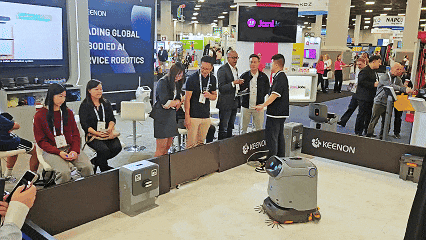 ISSA作為北美地區(qū)最具影響力的清潔與環(huán)境衛(wèi)生行業(yè)盛會(huì),每年吸引眾多國際品牌與專業(yè)人士參與。擎朗清潔機(jī)器人C40、C30,以及酒店機(jī)器人W3、配送機(jī)器人T10、大載重運(yùn)輸機(jī)器人S300等全場(chǎng)景機(jī)器人也集體亮相,吸引眾多國際客戶駐足交流,展臺(tái)現(xiàn)場(chǎng)氣氛熱烈。