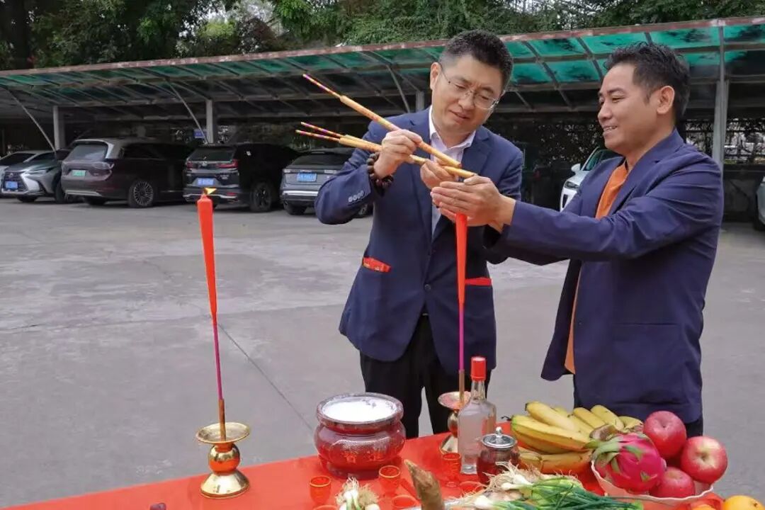 清晨吉時,愛普拉新能源總經(jīng)理梁立賢及副總經(jīng)理楊仕軍率先焚香祈福,祈愿愛普拉新能源在2026年龍馬精神、業(yè)績長虹;祈愿全體員工平安順?biāo)臁㈥H家安康。隨后,全體員工敬香,每一份虔誠,都凝聚著對公司發(fā)展的堅定信心。