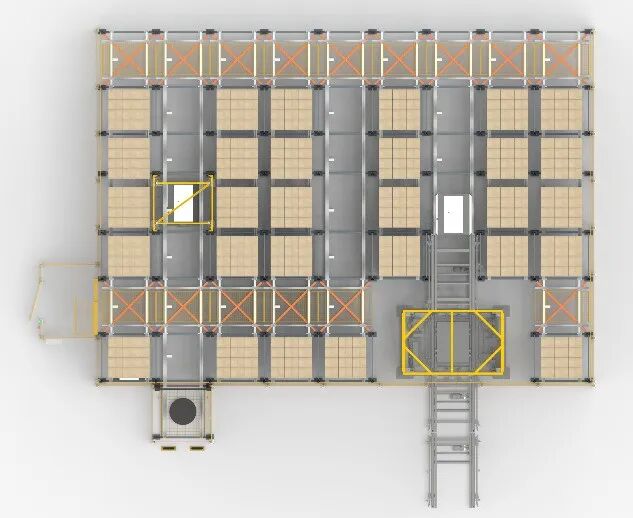 傳統(tǒng)提升機(jī)在自動(dòng)化立庫中的角色相對(duì)單一:承擔(dān)貨物的垂直位移功能,而托盤的水平接駁與庫位交接需依賴鏈條機(jī)、輸送線等外部設(shè)備完成。這種"垂直-水平"功能分離的設(shè)計(jì),決定了跨層作業(yè)必須經(jīng)由多設(shè)備、多系統(tǒng)協(xié)同完成,存在固有的響應(yīng)延遲與系統(tǒng)復(fù)雜度。