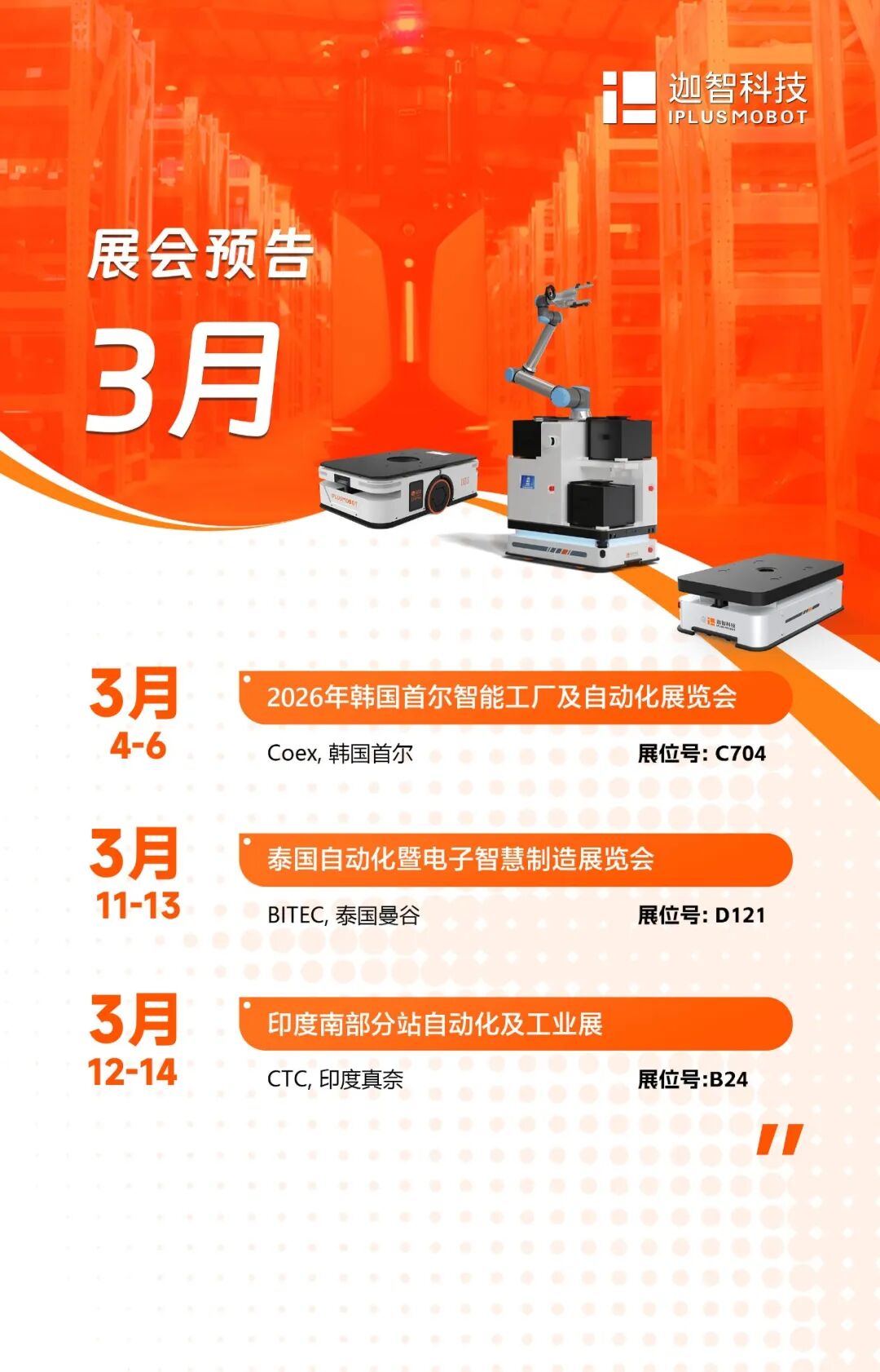 本月,迦智科技將出征韓、泰、印三國工業(yè)大展!誠邀您現(xiàn)場見證以智能機(jī)器人技術(shù)賦能全球生產(chǎn)生活變革。