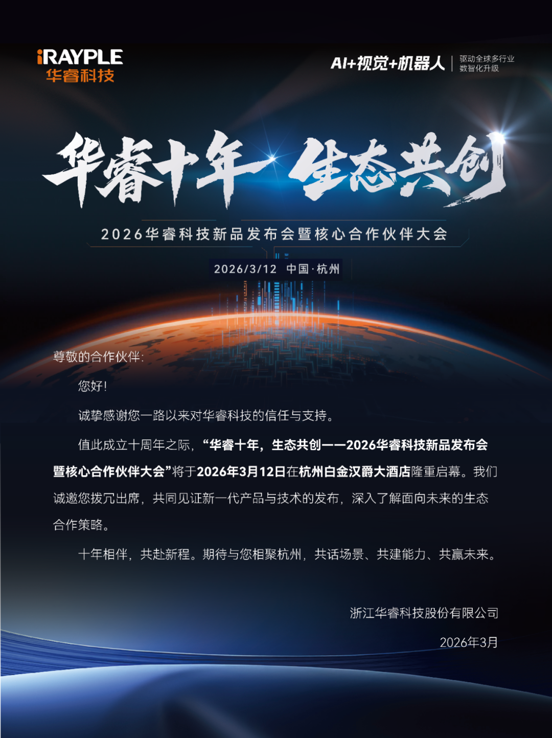 華睿十年,生態(tài)共創(chuàng)——2026華睿科技新品發(fā)布會(huì)暨核心合作伙伴大會(huì)將于2026年3月12日在杭州白金漢爵大酒店隆重舉行。本次大會(huì),既是十周年的重要節(jié)點(diǎn),也是面向未來(lái)的戰(zhàn)略發(fā)布與生態(tài)共建起點(diǎn)。我們誠(chéng)邀您相聚杭州,共同見(jiàn)證華睿邁向全球產(chǎn)業(yè)智能領(lǐng)導(dǎo)者的新階段。