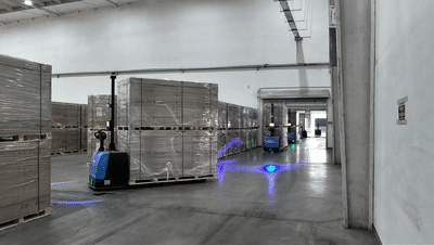在國內頭部光伏企業(yè)生產基地,一個由上百臺“小千斤”無人叉車組成的“鋼鐵蟻群”,正在晝夜不息地精準運轉。該項目覆蓋了多個倉庫的整場物流,是行業(yè)內規(guī)模領先的無人叉車集群應用之一。