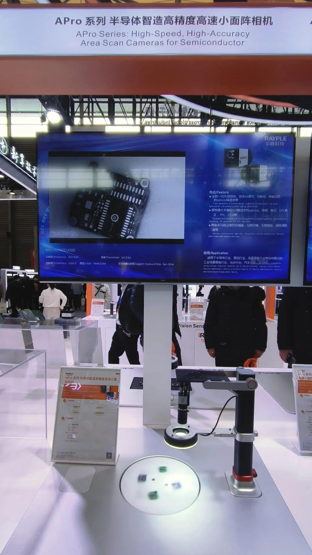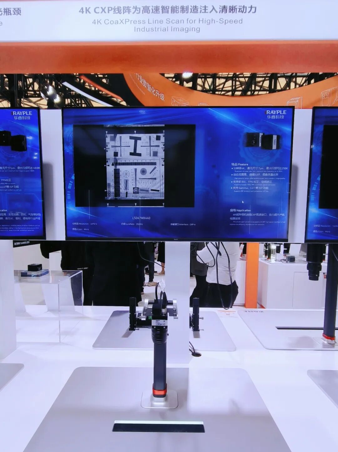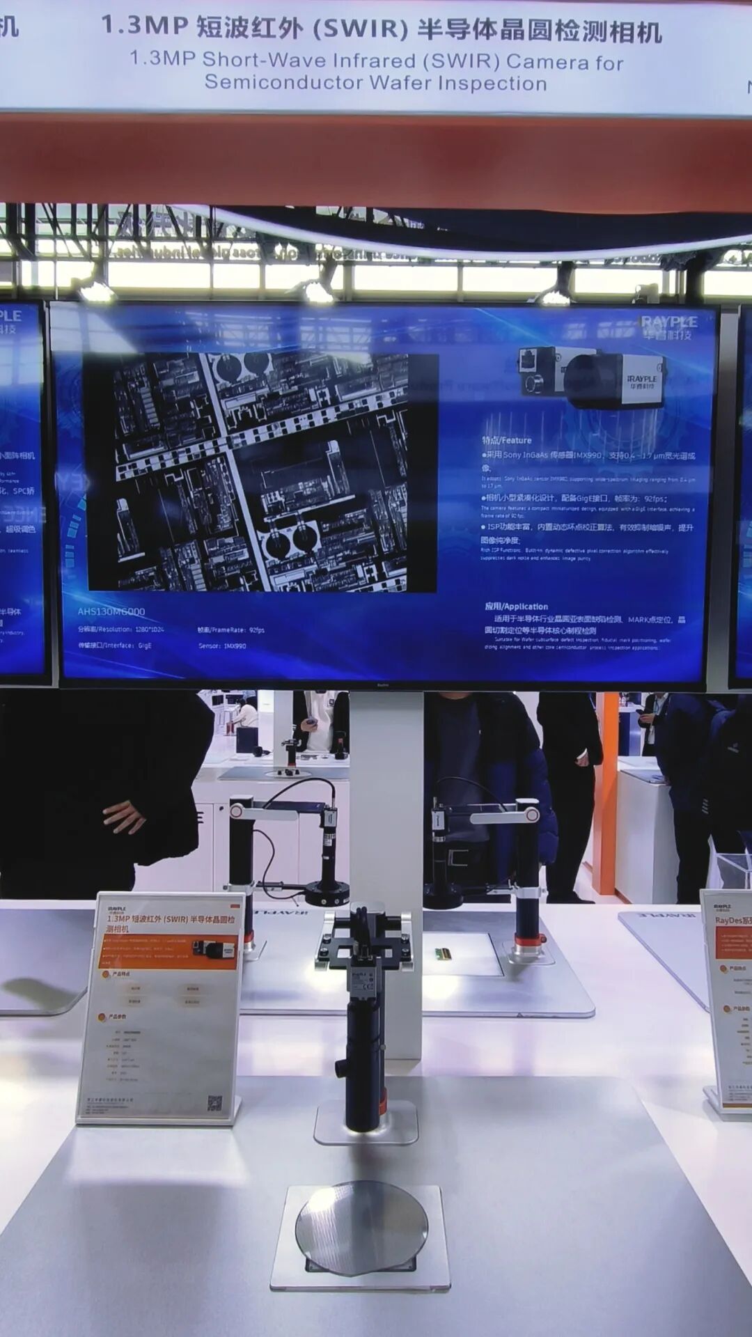 在半導(dǎo)體與高端制造領(lǐng)域,華睿科技現(xiàn)場展示了短波紅外系列、APro系列以及12/25MP單口CXP12相機(jī)等多款小面陣產(chǎn)品,覆蓋晶圓檢測、鋰電、3C等多元場景。