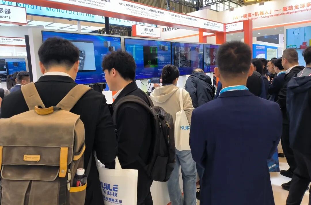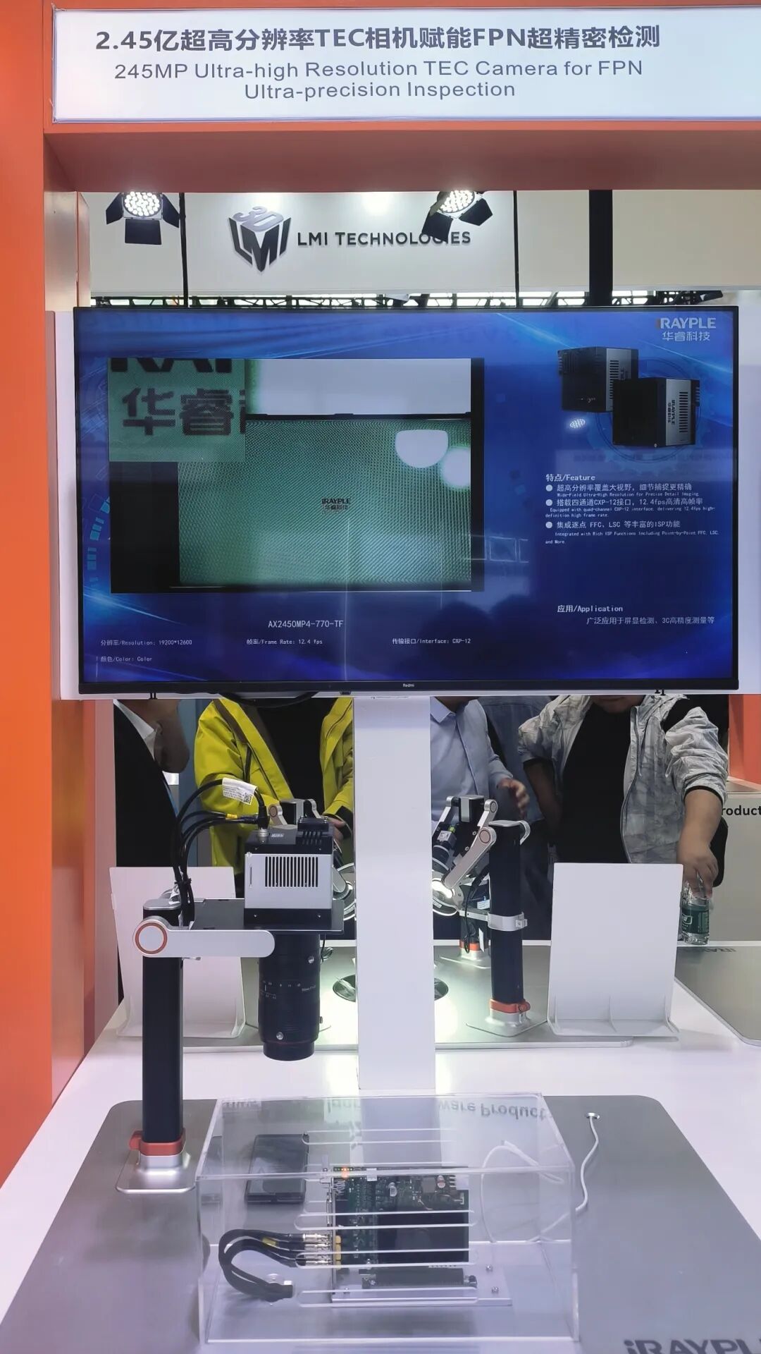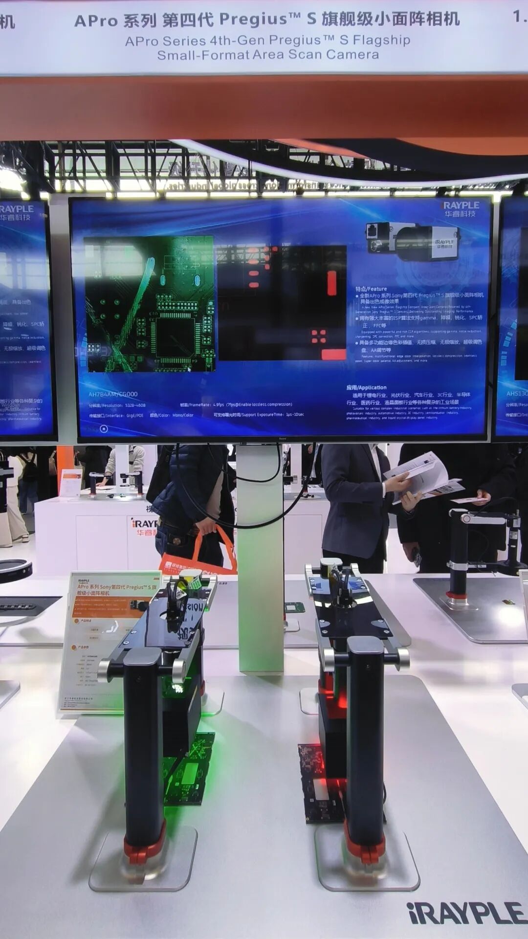在半導(dǎo)體與高端制造領(lǐng)域,華睿科技現(xiàn)場展示了短波紅外系列、APro系列以及12/25MP單口CXP12相機(jī)等多款小面陣產(chǎn)品,覆蓋晶圓檢測、鋰電、3C等多元場景。
