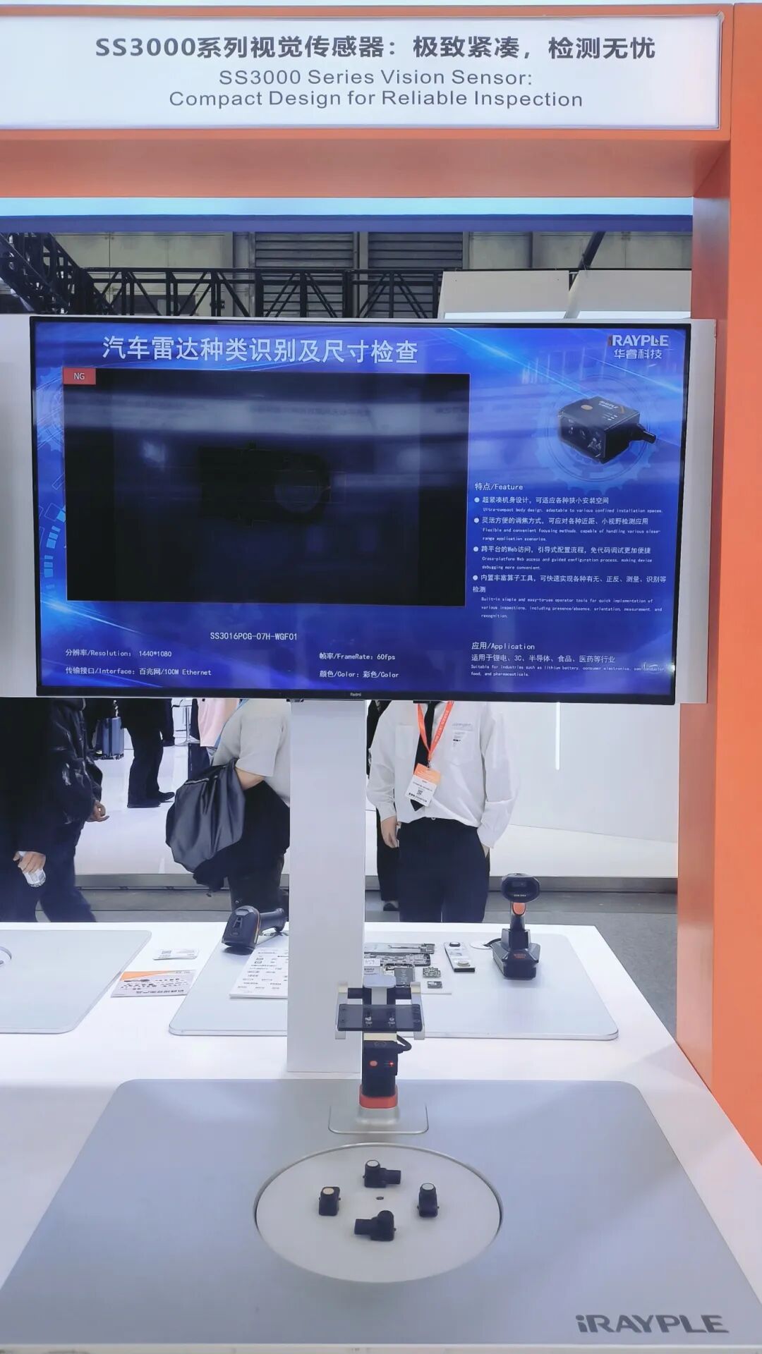 SS5000Pro系列AI旗艦視覺傳感器與SS7000系列AI智能相機(jī)同臺展示,其中SS5000Pro集成三種光源,接口可旋轉(zhuǎn),適配多材質(zhì)檢測;SS7000則內(nèi)置MVP算法平臺,無需工控機(jī),連接顯示器即可調(diào)試,真正實(shí)現(xiàn)智能化一體化部署。