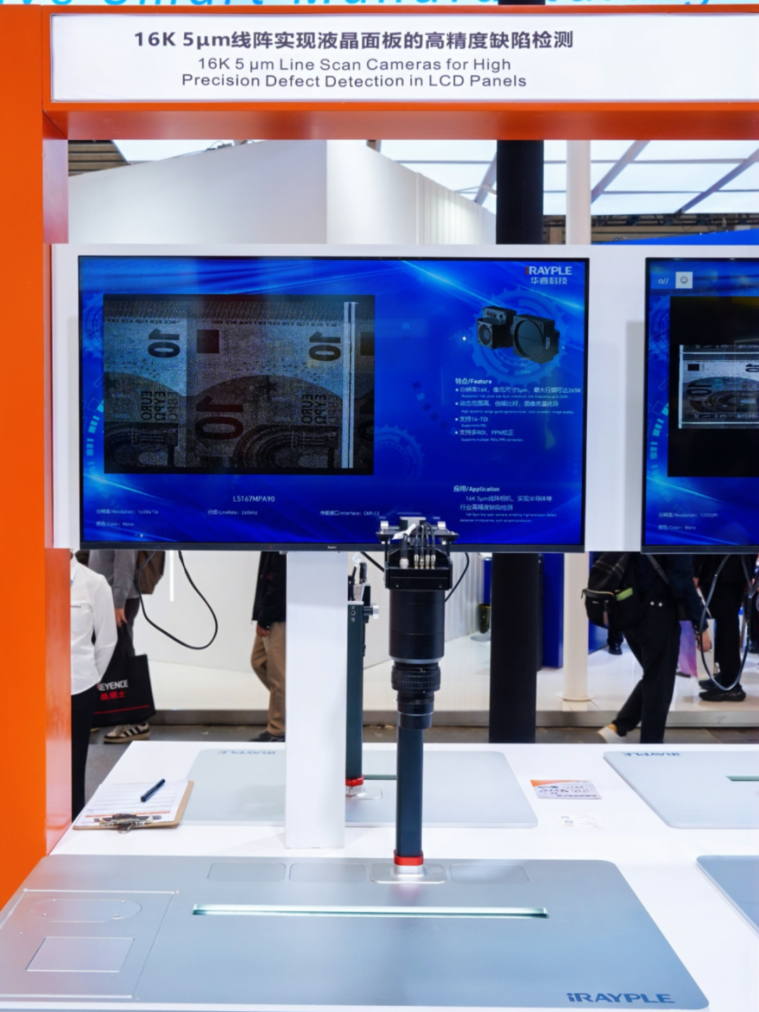 在高速產(chǎn)線檢測領(lǐng)域,16K萬兆網(wǎng)線陣相機(jī)無疑是本次展會的明星產(chǎn)品。它以74KHz行頻與2TDI模式,配合分時頻閃控制,單次掃描多角度成像,大幅提升缺陷檢出率,為鋰電、半導(dǎo)體等高節(jié)拍產(chǎn)線提供強(qiáng)大支撐。