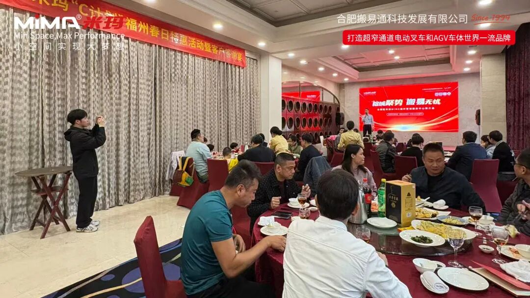 合肥搬易通(MiMA米瑪)福州營銷服務(wù)中心精心籌備了客戶答謝宴,以誠摯心意回饋到場嘉賓的支持與信賴。大家在輕松愉悅的氛圍中深入交流,共話物料搬運(yùn)行業(yè)發(fā)展趨勢,進(jìn)一步拉近了品牌與客戶的距離。