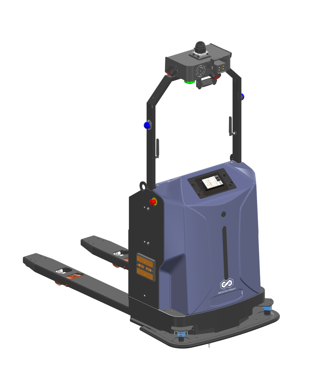 田字托盤因底部封閉橫梁的結構特性,成為智能搬運叉車的 “適配禁區(qū)”。市場上可選車型有限,要么寬支腿設備場景受限,要么強行硬叉導致托盤損傷、貨物傾翻,讓企業(yè)在導入智能化時屢屢受阻。為了徹底打破這一僵局,尋跡智行Beacon Robot正式推出兩款智能搬運新品——“智能平面搬運叉車”與“潛伏式智能搬運叉車”。