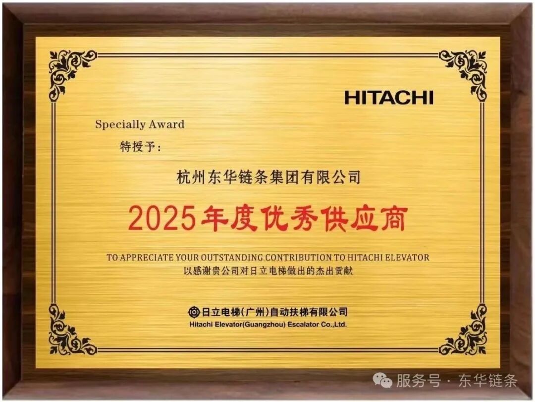 日立電梯誠(chéng)摯的感謝東華在2025年合作中積極參與日立電梯的發(fā)展與變革,一起完成BPG5新梯型梯級(jí)鏈開發(fā)、TX梯型前軸組件優(yōu)化等,共同攜手應(yīng)對(duì)市場(chǎng)變化,注重產(chǎn)品質(zhì)量、積極參與日立供應(yīng)商QC小組活動(dòng)、助力廣州日立電梯多項(xiàng)項(xiàng)目交付成功,為日立的發(fā)展做出了積極貢獻(xiàn)。