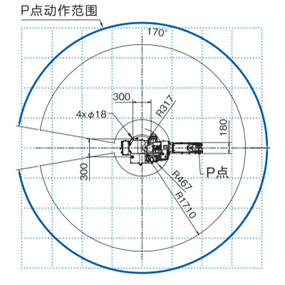 | 動作范圍 | 基本軸J1 | ±170°(±50°) |