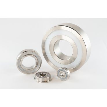 316不銹鋼的溫度范圍很廣。保持架和密封件會限制這些軸承的使用溫度,但開式滿裝 316 級軸承可以承受低至 -200°C 和高達(dá) 500°C 的溫度,盡管在更極端的溫度下負(fù)載能力會降低. 滿裝 316 級軸承以及帶有 PTFE 保持架和密封件的軸承適用于低溫應(yīng)用,因為 PTFE 在低至 -190°C 時具有良好的低溫性能。不建議在低于 -40°C 或高于 80°C 的溫度下使用標(biāo)準(zhǔn) PE 保持架和密封件。如果高溫應(yīng)用需要帶保持架和密封件的軸承,則可在高達(dá) 250°C 的溫度下使用 PEEK 或 PTFE。