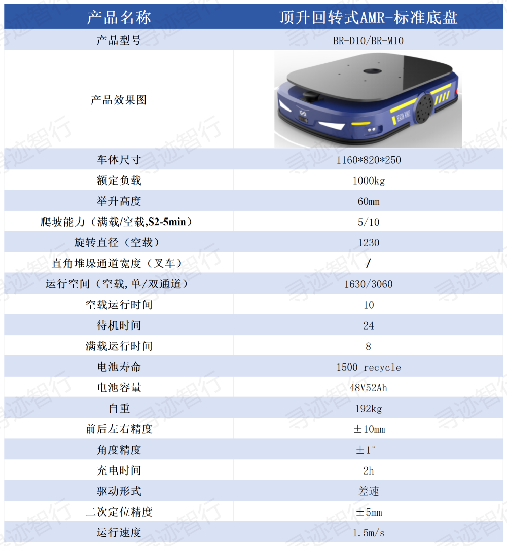 尋跡智行 | 頂升回轉(zhuǎn)式AMR-標(biāo)準(zhǔn)底盤系列-BR-D10小型搬運(yùn)機(jī)器人