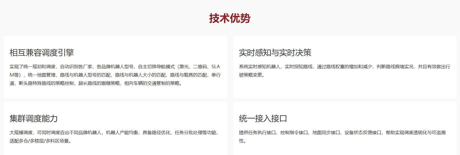 磅旗科技多品牌機(jī)器人混合調(diào)度系統(tǒng)ADS是多廠商,多品牌,多型號(hào)機(jī)器人混合調(diào)度系統(tǒng),通過使用先進(jìn)的AGV智能調(diào)度控制算法,結(jié)合智能工廠、智能物流具體的應(yīng)用場景,實(shí)現(xiàn)多品牌AGV/AMR同場作業(yè)、同一張地圖混跑,高效路徑規(guī)劃、高效交通管制,讓不同設(shè)備/系統(tǒng)間有了共同的平臺(tái)語言。
