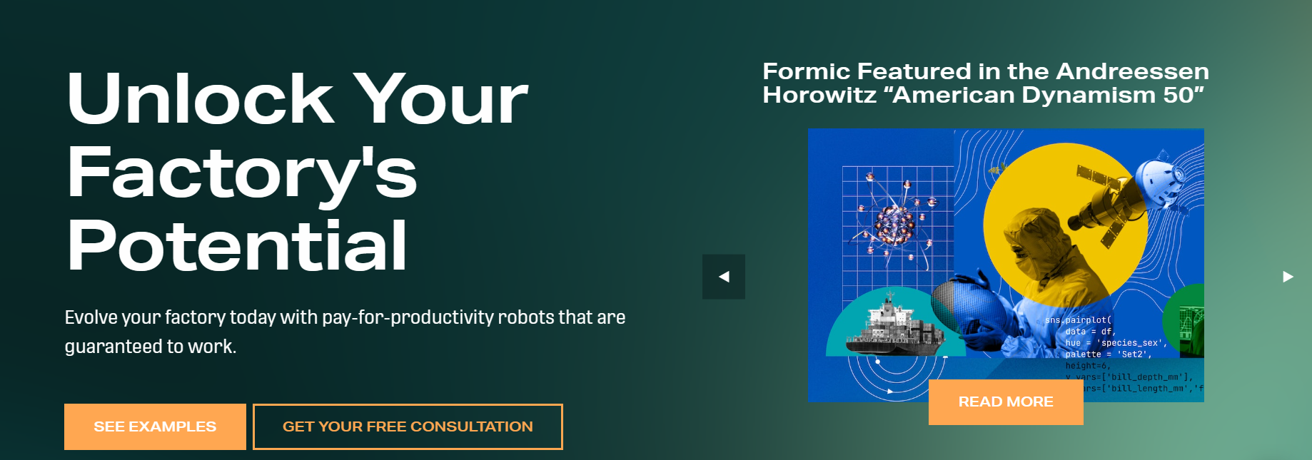 成立于 2020 年的 Formic Technologies 是一家總部位于美國(guó)芝加哥的公司,正在美國(guó)制造自動(dòng)化領(lǐng)域掀起一場(chǎng)革命。他們的創(chuàng)新方法以提供機(jī)器人即服務(wù)(RaaS)為核心,使各種規(guī)模的制造企業(yè)都能更方便、更經(jīng)濟(jì)地實(shí)現(xiàn)自動(dòng)化。這種服務(wù)模式使企業(yè)能夠使用先進(jìn)的機(jī)器人系統(tǒng),而無需大量的前期資本投資。